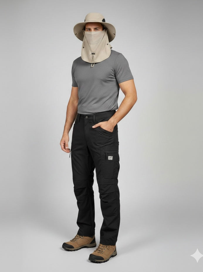 Whether you’re climbing exposed trails, walking through dusty routes, or exploring new terrains, this hat keeps your face, neck, and head protected while allowing proper airflow for all-day wear.